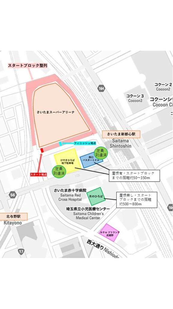 マラソンの部男子ランナーの手荷物預かり・返却場所のうち、「けやきひろば地下駐車場」は定員に到達しました。