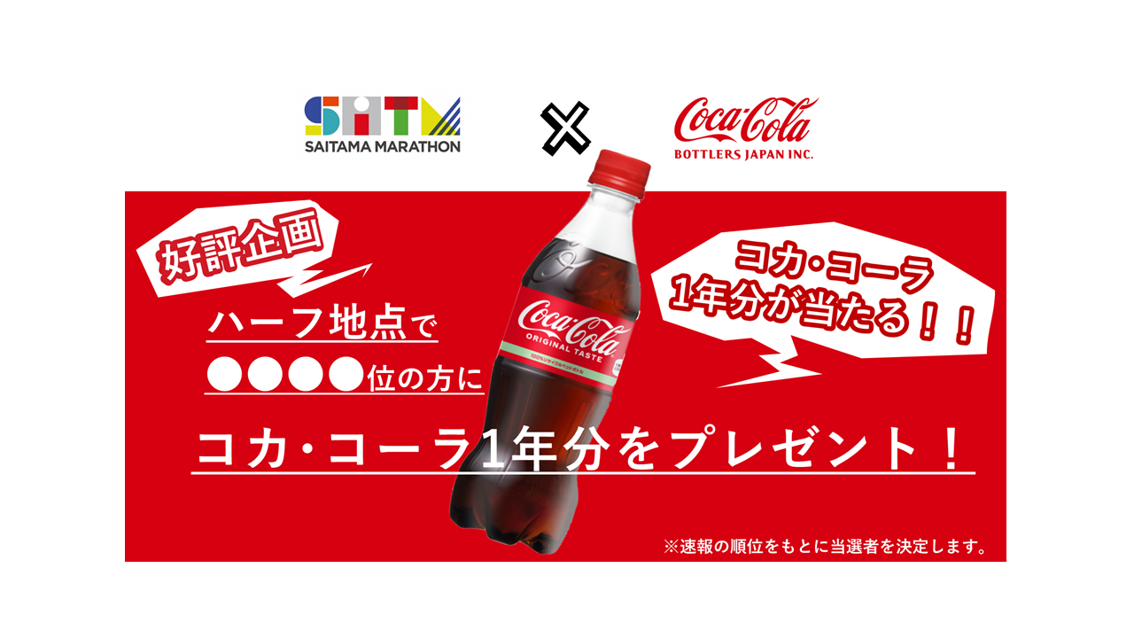 マラソンの部のランナー対象!コカ・コーラ1年分が当たるプレゼント企画を実施します!
