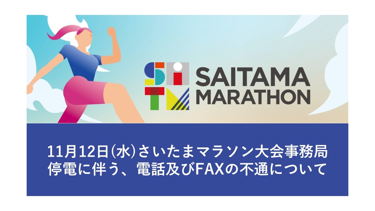 11月12日(水)【さいたまマラソン大会事務局】停電に伴う、電話及びFAXの不通について